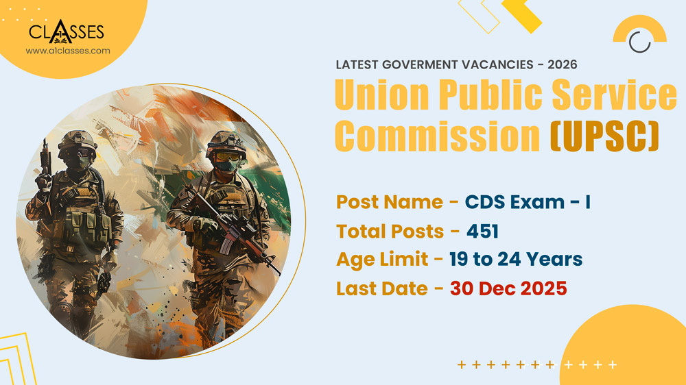 Union Public Service Commission (UPSC) Combined Defence Services Examination (CDS) (I) has officially released official notification for the recruitment of 451 Indian Military Academy (IMA), Indian Naval Academy (INA), Air Force Academy (AFA), and Officers’ Training Academy (OTA) etc. vacancies. Online applications start from 10th December 2025 and eligible candidates can apply Online through the official UPSC website. The last date to submit the application form is 30th December 2025.